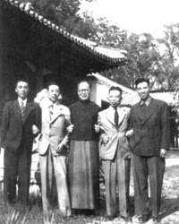 梅贻琦(左三)与胡适(...